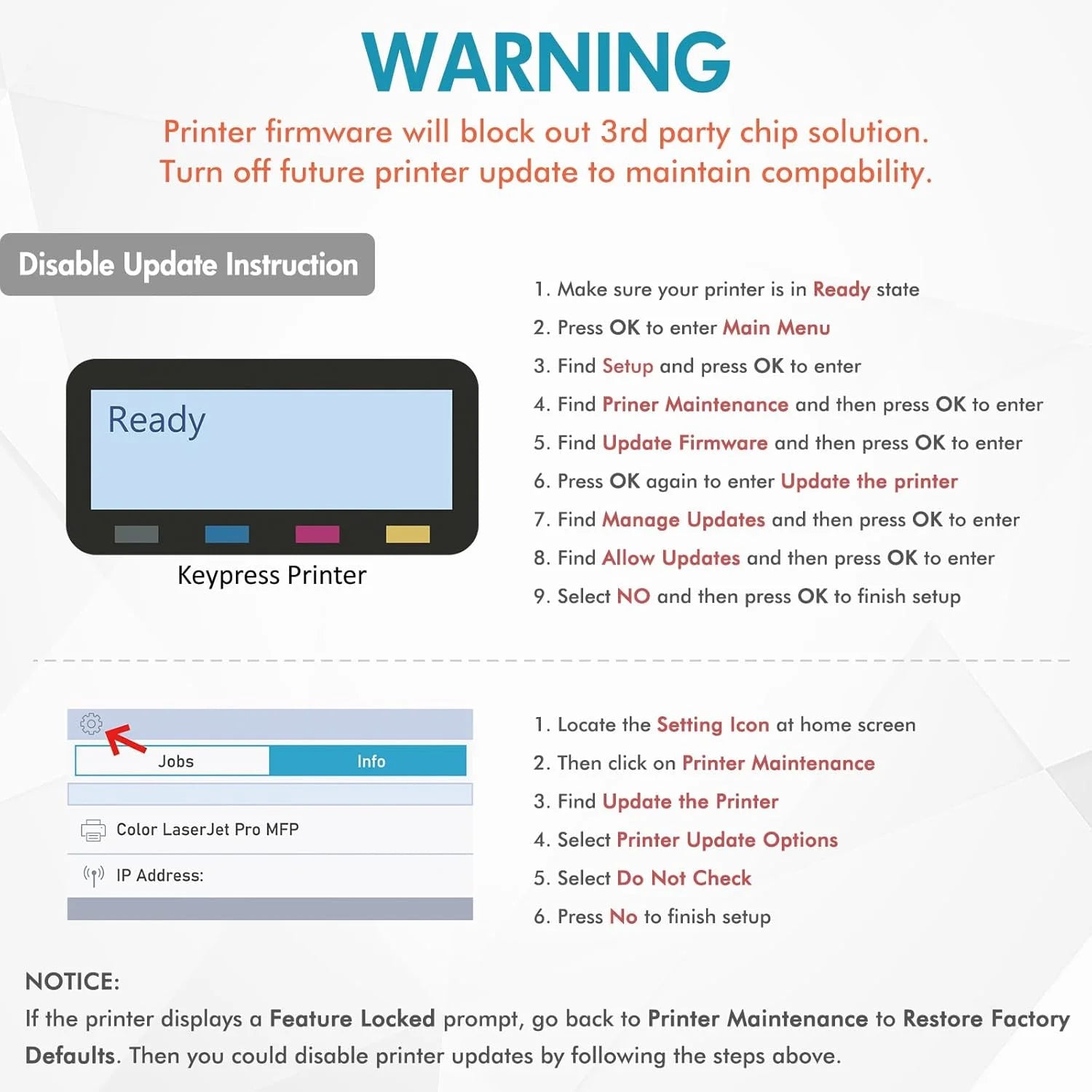 - The pre-installed chip on the toner cartridges ensures seamless integration, eliminating the need to transfer the original chip.