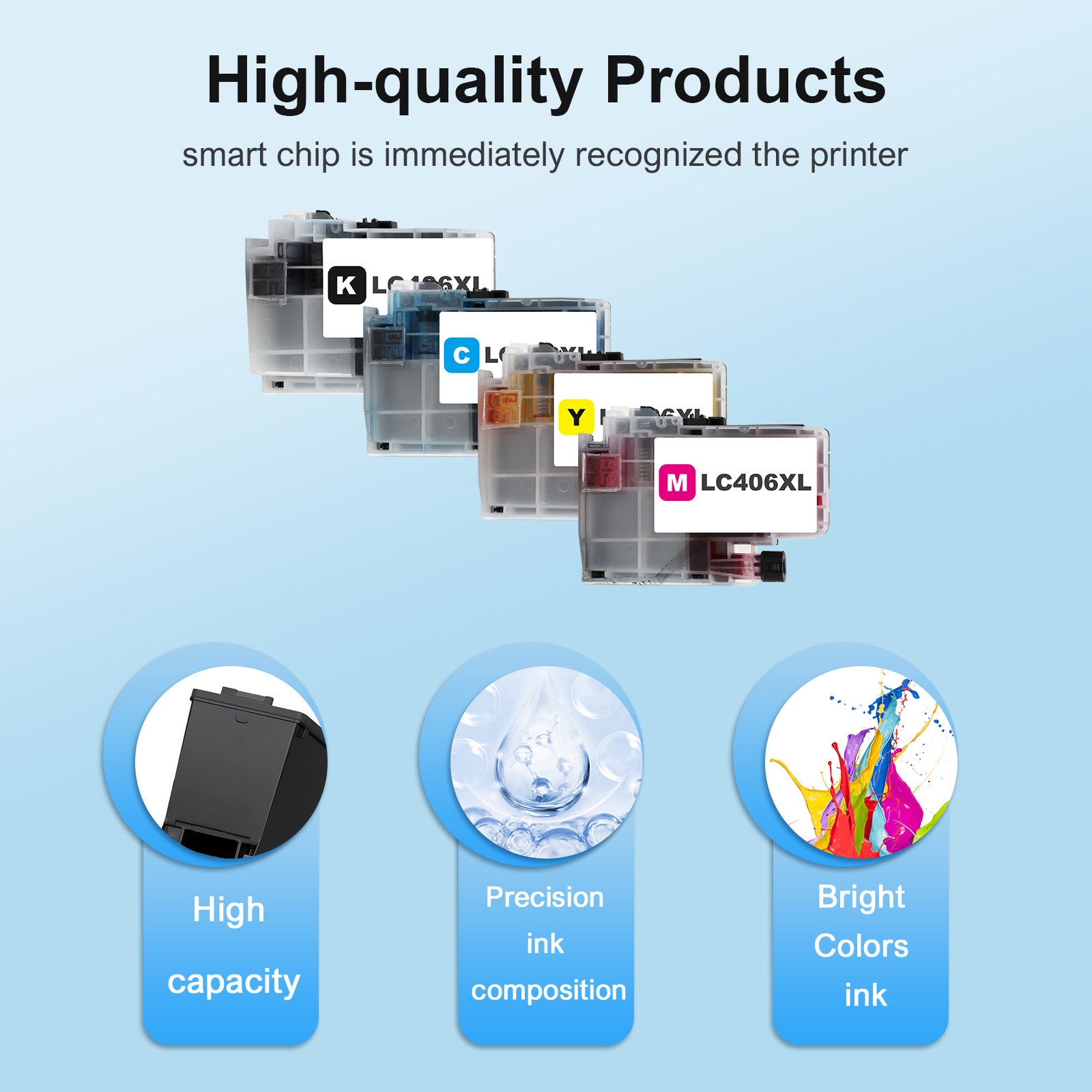 - Package includes: LC406XL Ink Cartridges Combo Pack (1* LC406 XL Black, 1* LC406 XL Cyan, 1* LC406 XL Magenta, 1* LC406 XL Yellow Ink Cartridge)