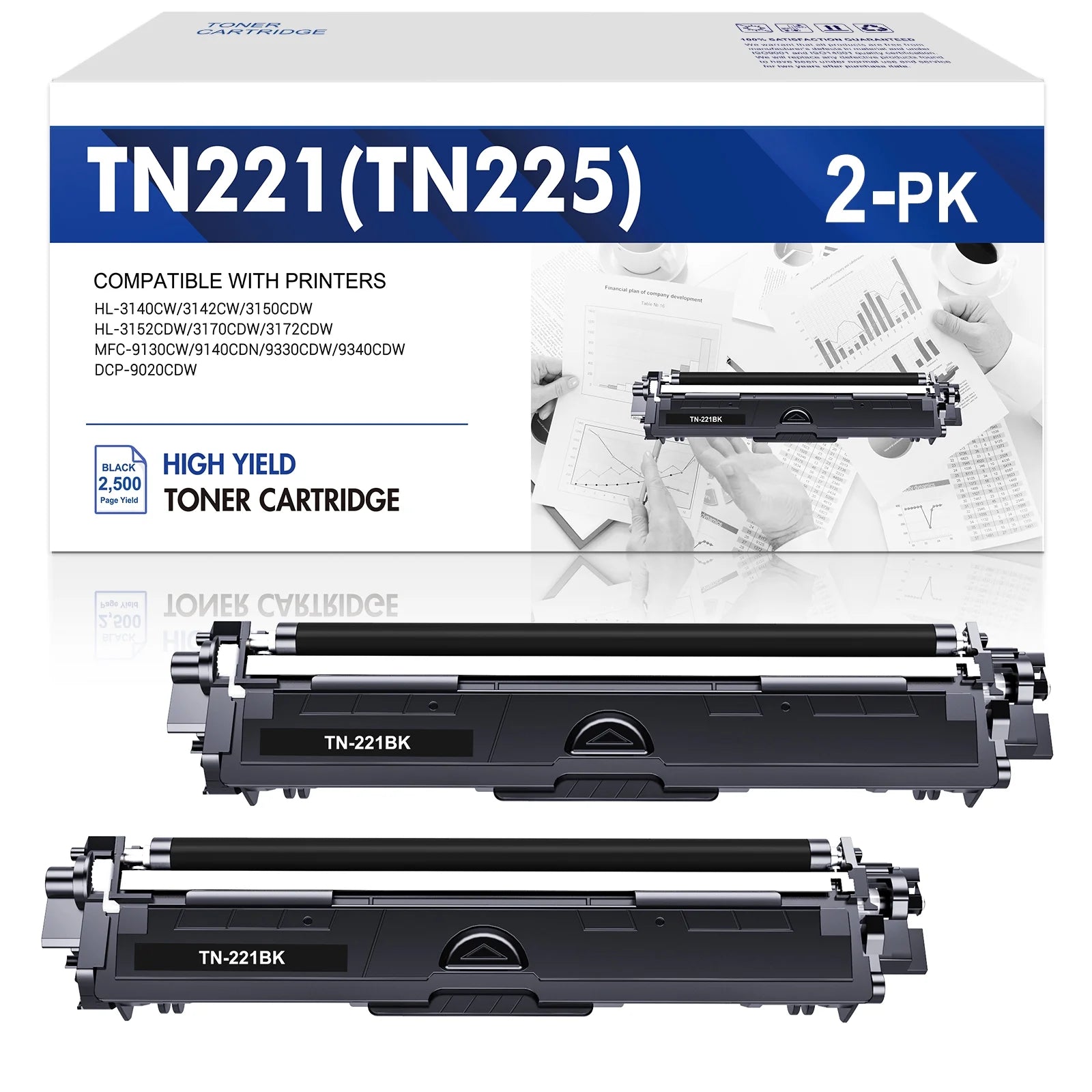 TN221BK TN-221 Black Toner Cartridge Replacement 2-Pack for Brother TN221 TN-221BK MFC-9130CW HL-3170CDW HL-3140CW MFC-9330CDW Printer Ink