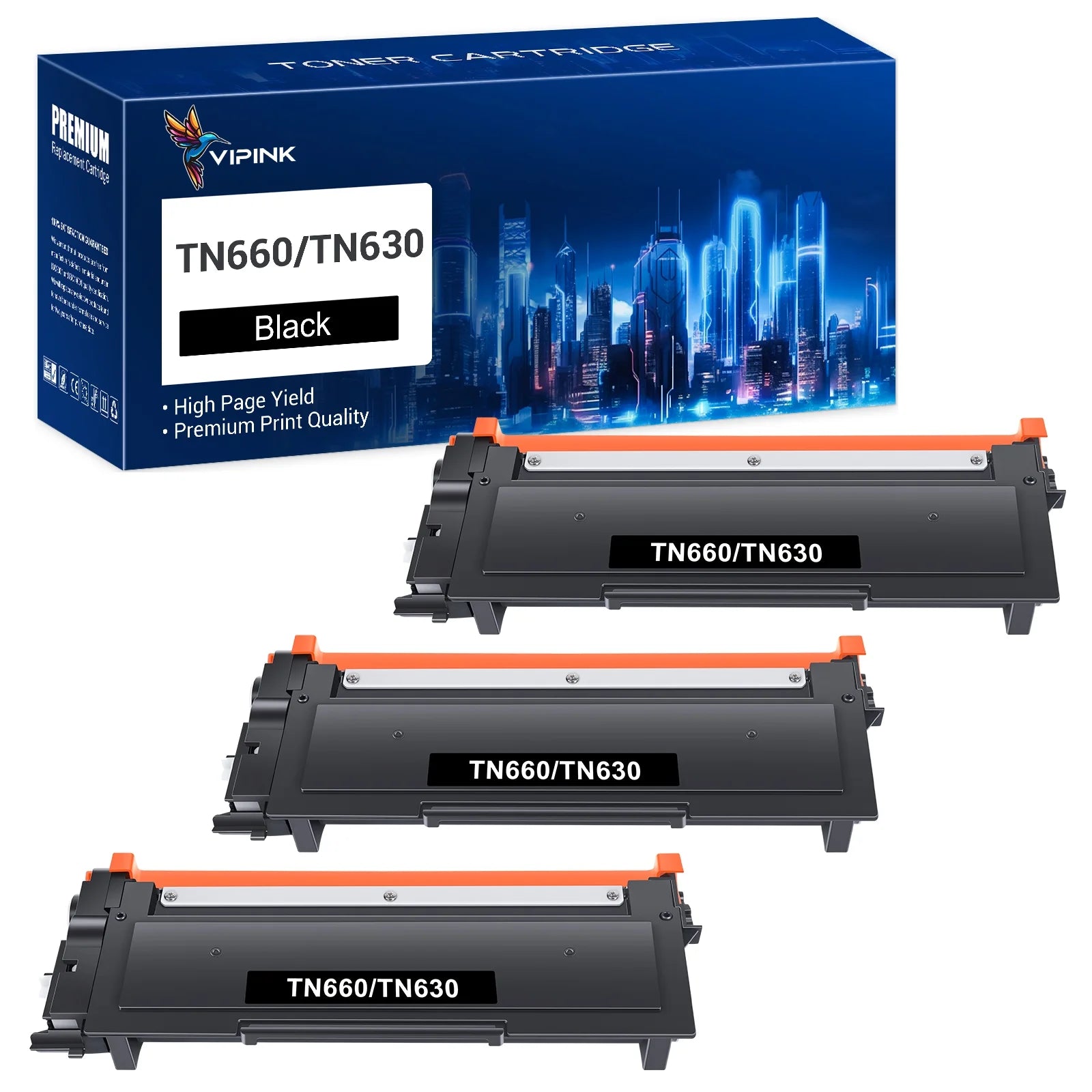 - 3 Pack High Yield TN660 TN630 Toner Cartridge Black